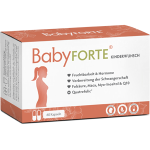 BabyFORTE® Kinderwunsch enthält aber auch alle B-Vitamine, Vitamin D, Myo-Inositol, Q10 sowie peruanisches Maca. Wir bieten BabyFORTE® Kinderwunsch mit und ohne Jod an.