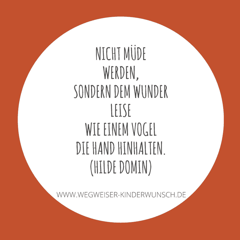 In unserem Transferraum in der Klinik stand ein schöner Spruch der zu uns sehr gut gepasst hat: „Nicht müde werden, sondern dem Wunder leise wie einem Vogel die Hand hinhalten.“ Hilde Domin