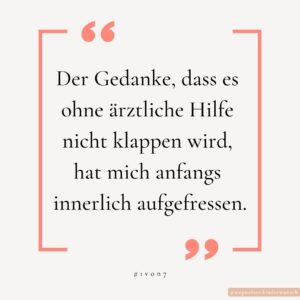 Der Gedanke, dass es ohne ärztliche Hilfe nicht klappen wird, hat mich anfangs innerlich aufgefressen. Nach einiger Zeit habe ich mich aber gefangen, da ich wusste, dass uns in der Kinderwunschklinik geholfen wird.