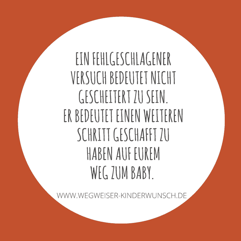 Ich habe in der Instagram-Community einmal einen Ratschlag erhalten, den ich sehr gut fand und an den ich mich gerne immer wieder zurückerinnere: Ein fehlgeschlagener Versuch bedeutet nicht gescheitert zu sein, wieder bei Null anfangen zu müssen. Er bedeutet einen weiteren Schritt geschafft zu haben auf eurem Weg zum Baby. Man muss jeden Rückschlag als Teil von einem Ganzen sehen, durch den man immer weiter und weiter nach vorne kommt.